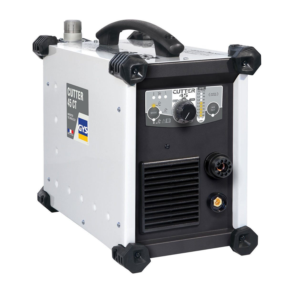CUTTER 45 CT, opremljen utičnicom od 32 A, je plazma rezač od 45 A s čistim kapacitetom rezanja do debljina od 25 mm na širokom rasponu materijala. Sustav paljenja bez HF-a čuva i produžuje vijek trajanja potrošnog materijala. Dizajniran za upotrebu u teškim uvjetima, ima vrlo robusnu mehaniku i jednostavnu upravljačku ploču. Unaprijed je ožičen za upotrebu na automatskim stolovima za rezanje.