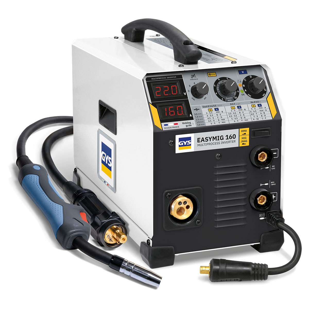 EASYMIG 160 je poluautomatski aparat za zavarivanje koji kombinira postupke MIG/MAG, punjene žice i MMA postupaka zavarivanja. Zahvaljujući korisničkom sučelju i digitalnom zaslonu, postavke napona i brzine dodavanja žice se brzo i jednostavno postavljaju i podešavaju. Njegov ultra-lagani dizajn čini izuzetno lakim kretanje po radilištu. EASYMIG 160 preporučuje se za zavarivanje čelika, nehrđajućeg čelika i aluminija.