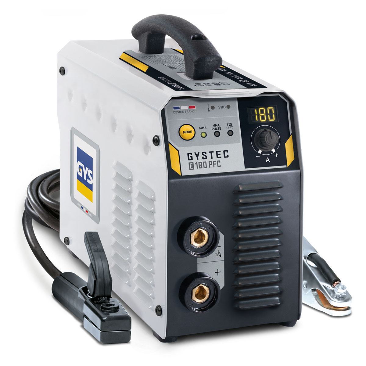 Opremljen najnovijom tehnologijom i digitalnim upravljanjem, GYSTEC E180 PFC je jednofazni inverterski aparat za zavarivanje od 180 A s 3 postupka zavarivanja: MMA, pulsnim MMA i TIG lift.