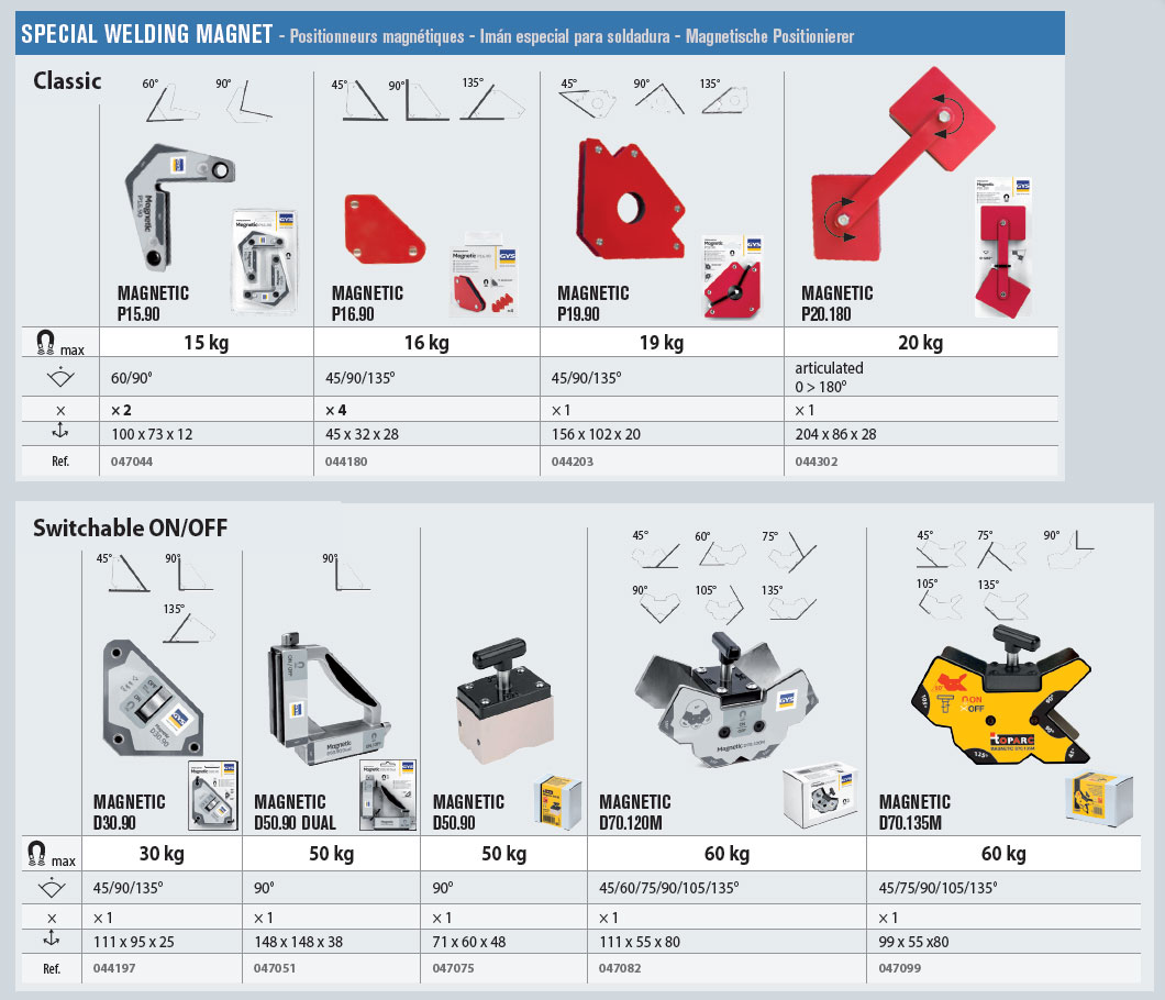 Za magnete za pozicioniranje dostupne su brojne izvedbe i varijante, zbog čega nisu pojedinačno prikazani u katalogu.